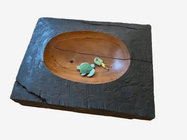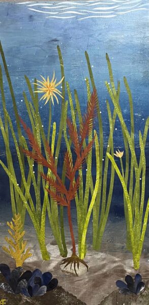 I view my art as a journal, collecting “treasures” like seed pods, shells, and rocks while hiking. These items inspire my creations, reflecting my impressions of nature. I focus on animals to express my fascination, aiming to capture their unique gestures and expressions in clay for bronze. My art conveys beauty and whimsy, enticing viewers to engage with it. I also craft unique animal head sculptures adorned with mosaic patterns made from found objects. These represent camouflage but also showcase my love for color and organic shapes.