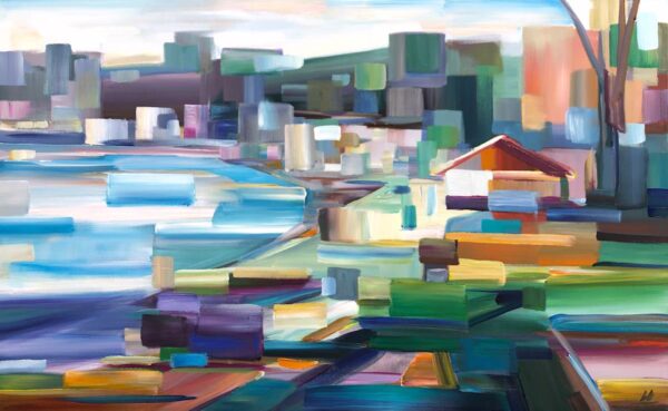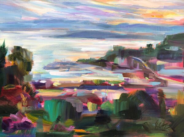 Brooke is a self-taught landscape painter who started plein air painting in 2009. Her distinctive style focuses on human perception through a deconstructed technique resembling modern pointillism, using color blocks to create vibrant compositions. Her recent acrylic works blend traditional and contemporary landscapes, showcasing energy through broken color techniques. An exhibiting artist for over a decade, Brooke’s nationally and internationally recognized work is featured in Pacific Northwest galleries. Highlights include a feature in Plein Air Magazine (September 2022) and recognition in American Art Collector Magazine (2019). She has won awards such as Best Oil/Acrylic Painting at the 2018 Carmel Plein Air Competition. In Seattle, her art is displayed in local businesses and art walks. Outside of painting, Brooke is a ranked pinball competitor.