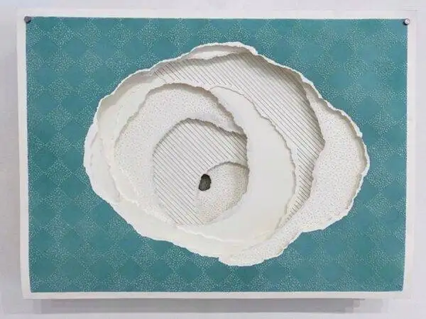Krista Reuter is a Michigan artist known for her layered paper art that plays with light and shadow. Inspired by abstract patterns in nature, she holds a BFA from Iowa State University and studied at the Royal College of Art. Her award-winning works have been exhibited internationally, and she served as program director at the Saugatuck Center for the Arts for six years. Her techniques emphasize simplicity, using fine lines and piercing to create both fragility and strength. Reuter’s work blurs the lines between drawing and sculpture, inviting curiosity through layered sheets that cast intriguing shadows. She aims to celebrate the handmade and shift perspectives, creating impactful, poetic spatial experiences.