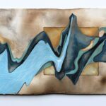 Mixed Media – Watercolor, Ink, and Collage on Paper.. McMeans works in mixed media — watercolor and ink on hand-collaged paper grounds. $900. International shipping available.