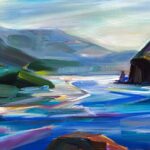 Golden light bathes weathered rock formations as Brooke Borcherding captures Cannon Beach’s geometric drama. Her oil technique layers luminous glazes over structured brushwork, revealing how shifting angles transform coastal stone into sculptural monuments. The composition balances atmospheric softness against architectural precision, creating a meditative landscape that rewards prolonged viewing. Borcherding’s mastery of light and form elevates this scene beyond documentation into contemplative portraiture of place. The painting resonates with collectors seeking works that bridge abstraction and representation, offering both visual sophistication and emotional resonance that deepens with time.