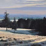 “Bale Ready” by Neal Philpott is a serene landscape that invites the viewer to step into a tranquil mountain forest, where the gentle lapping of a lake’s waves against the shore creates a sense of peacefulness. The artist’s masterful use of oil on canvas brings depth and texture to the scene, with forest green, soft blue, and cream white hues blending harmoniously to evoke a sense of calm. The cool gray and golden tan tones add a sense of warmth and coziness to the piece, making it a unique and captivating work of art. As part of the JG Art Gallery’s collection, “Bale Ready” is a standout piece that showcases the artist’s skill and attention to detail. With its soothing mood and stunning visual beauty, this landscape is sure to be a treasured addition to any art collection. To acquire “Bale Ready” or to experience the full range of Neal Philpott’s work, visit us at JG Art Gallery, with locations on Bainbridge Island, WA and Park City, UT.