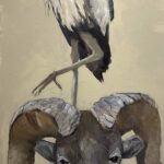 “Grace And Power” by Peter Juvonen is a captivating oil on canvas piece that invites viewers to step into a whimsical world where wildlife and fantasy blend seamlessly. The Great Blue Heron, perched majestically on a ram’s head, exudes a sense of playful elegance, as if defying gravity and convention. The artist’s masterful use of cream white, dark brown, deep blue, gray, and tan hues creates a visually stunning experience, drawing the viewer’s eye to the intricate textures and expressive brushstrokes. This unique figurative wildlife piece, measuring, is a testament to Juvonen’s skill and creativity. As part of the JG Art Gallery’s collection, “Grace And Power” is a rare find for collectors seeking a one-of-a-kind piece that sparks imagination and conversation. For those who appreciate the beauty of wildlife and the magic of art, acquiring “Grace And Power” would be a treasured investment, and we invite you to visit us at JG Art Gallery to experience it in person.