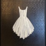 Sivek uses acrylic’s capacity for rapid layering and erasure to construct a white dress from translucent veils of titanium and zinc whites. The figure remains incomplete, half-suggested through gestural mark-making.