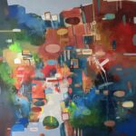 Collado’s acrylic work employs flat color passages and bold contour. The title’s sentiment finds expression through formal language—direct, unpretentious, working against decorative impulse.