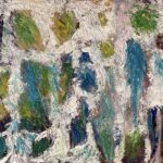 Oil on canvas. Juvonen renders natural elements—vegetation, stone, light—through restrained palette and deliberate surface texture.