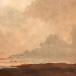 Juvonen layers translucent glazes to build atmospheric depth across the composition. Forms emerge from and dissolve back into a sky rendered through additive paint technique.