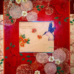 Mixed Media on Wood Panel.. Fraga builds frescoed panels with layered stamps, acrylic, and gold leaf — Chinoiserie motifs. $5,000. International shipping available.