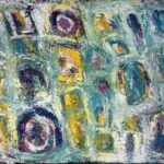 Oil paint marks build in deliberate sequence across the canvas, each gesture weighted within an underlying grid structure. Succession unfolds through formal arrangement rather than narrative progression.